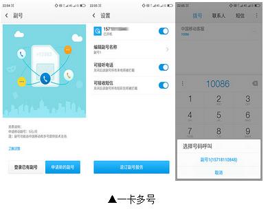 一卡多号:360和中国移动通信协作在360手机中集成化了一卡多号的作用,要是进到手机上的手机联系人页面就可以进到一卡多号,客户能够根据一卡多号的页面开展一卡多号的申请办理及其管理方法,一个大号能够申请办理五个副好,每一个副号月租费5元,启用取得成功后拨电话是就可以立即应用副号了。
